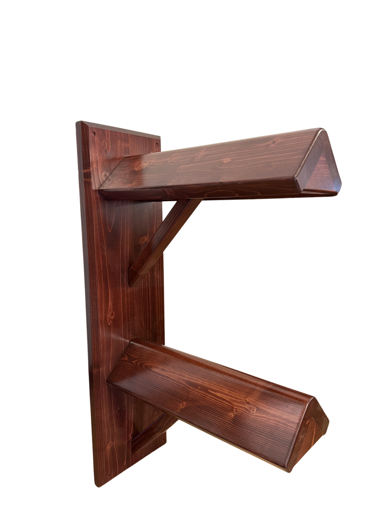 Solid Wood Double Wall Mount Saddle Rack Mahogany Finish
