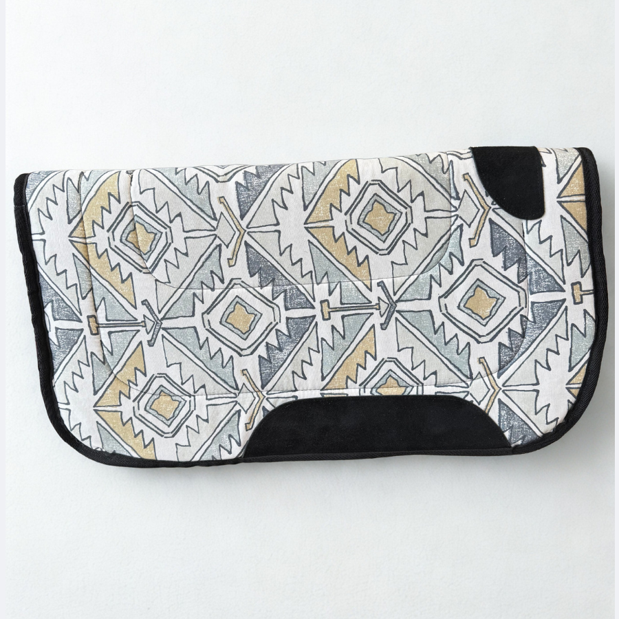 Built to fit and perform. This 29" x 32" pad features shearling fleece lining and genuine leather wear leathers, a beautiful and vibrant aztec pattern and polyester outside binding.