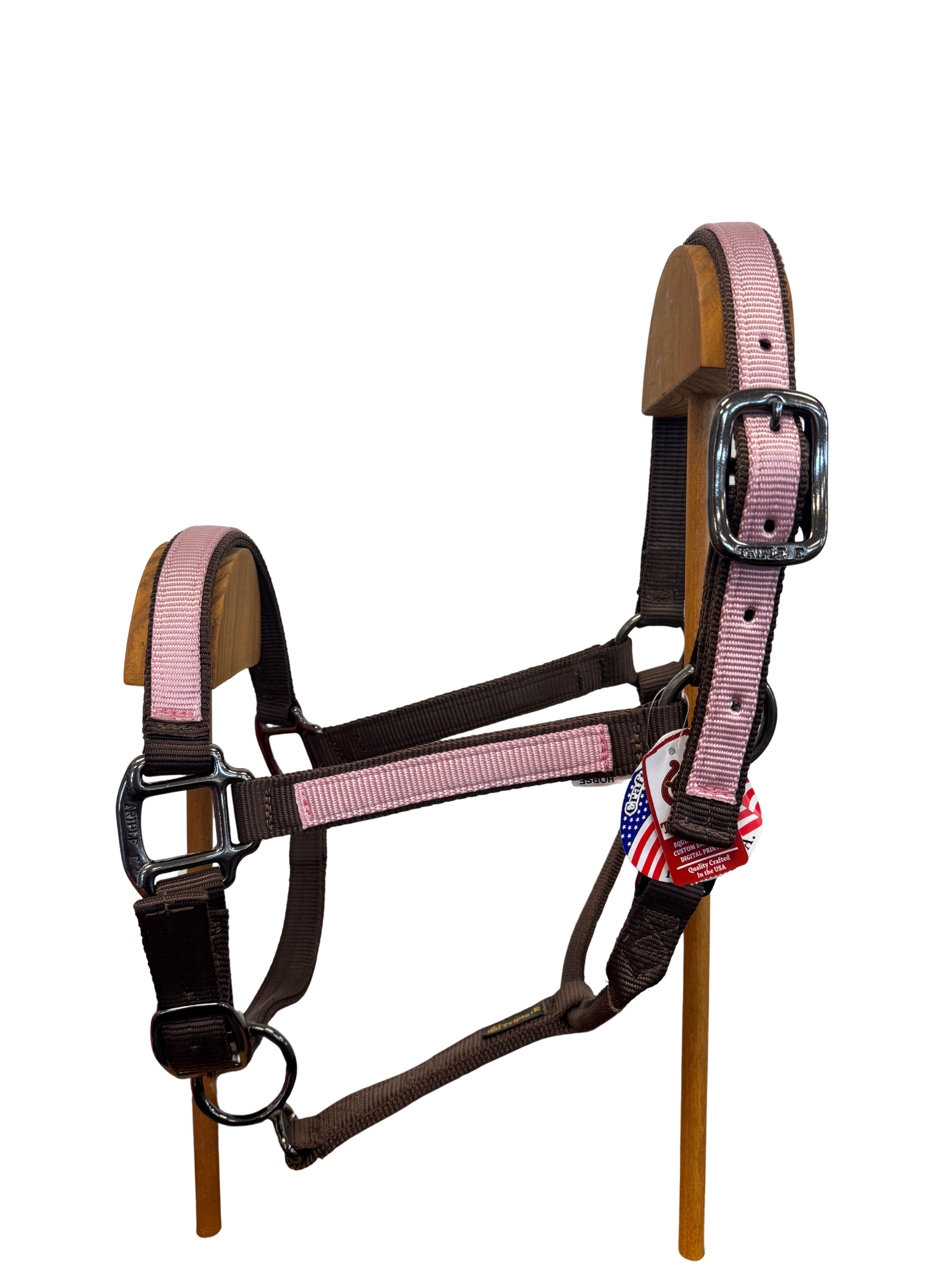 In stock and ready to ship! Average Horse size with throat snap and adjustable chin. This USA made Nylon horse halter typically requires 3-4 week shipping time due to products being custom, made to order. But this BEAUTY is available for quick delivery!